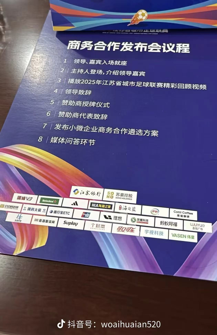 值得一提的是,为落实省委省政府对全省小微企业、个体工商户的关心和重视,着力优化营商环境、激活市场主体活力与创造力。本次发布会重磅发布了小微企业商务遴选合作方案,该方案将面向江苏省内公开遴选优秀的小微企业、个体工商户,为其开放赛事官方赞助商权益,提供品牌展示、营销推广的平台。组委会计划推出的赞助席位将通过公开报名、资质审核,进行遴选,以公证摇号的方式产生32个名额,享受与联赛其他官方赞助商同等权益回报。此举在降低小微企业参与联赛门槛的同时,也为更多小微企业通过“小投入”获得“大流量”创造机会,让“街头小店”也能与“国际巨头”同“场”露出。目前,组委会已经开通线上报名通道,企业可通过官方途径进行报名。